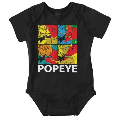 Urban Popeye the Real Green Spinach Baby Romper Boys or Girls Licensed Brisco Brands Black 12m