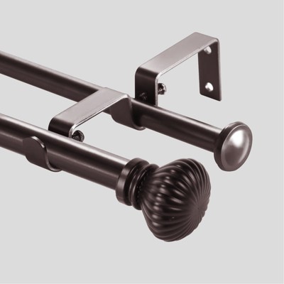 Urbanest Fluted Ball Adjustable Double Drapery Curtain Rod Set, 5/8"