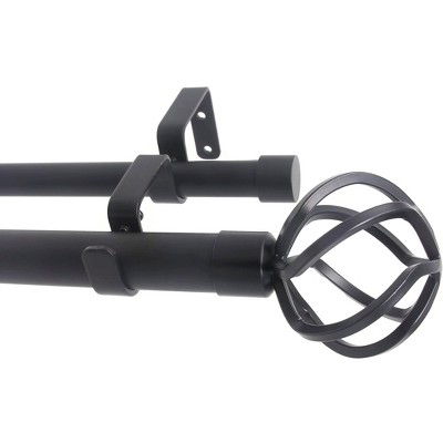 Urbanest Steel Ball Manhattan 1-inch 3-4 inch Double Drapery Curtain Window Rod Set Black 48"-84”