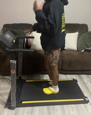 [This review was collected as part of a promotion.] We really love this walking pad treadmill. Our favorite part of this walking pad is the fact that it folds neatly to store underneath our couch. We do not have enough room for a full size treadmill so this is perfect. We really love that it has handles that folds down neatly as well. This walking pad goes up to a max of 6 mph which is really great for a walking pad. It is well-made and a solid material which I can appreciate. I received an incentive to write this review.