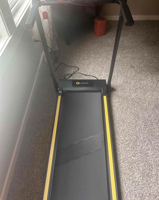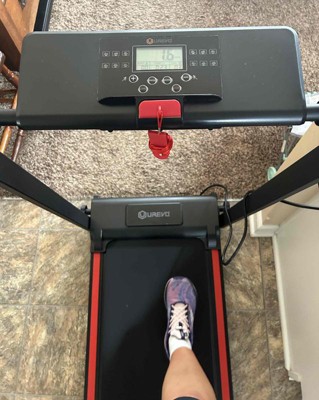 [This review was collected as part of a promotion.] This UREVO Folding Mini Walking Pad Treadmill is super convenient and the perfect size for anyone low on space but still wants a place to exercise. It's super easy to put together and fold up. You just twist in 4 knobs to set up and then take those knobs out to fold up and store. I have a regular size treadmill, also and this mini walking pad takes up probably less than half the space my regular size one does. What I don't like it how low the screen is, you can rotate it but I wish you could move it higher. I received an incentive to write this review.