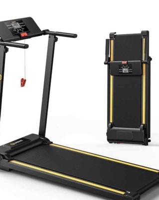 This UREVO Folding Mini Electric Walking Pad Treadmill is perfect for people who want all the convenience of having a treadmill without taking up too much space. The compact design and one-step folding makes it easy to use and store away when you are done. The quiet powerful 2.25 HP motor makes running indoors possible without disturbing others. There is a five-layer non-slip shock-absorbing running belt that is 15" wide. This compact walking pad treadmill is perfect for adults under 6' and for your dog. There are 12 built-in HIIT programs for the most effective way to burn fat. The adjustable LCD screen will keep track of your exercise data such as speed, time, distance, and calories. Enjoy the convenience of working out at home with this UREVO Folding Mini Electric Walking Pad Treadmill and easily store it away when you are done.