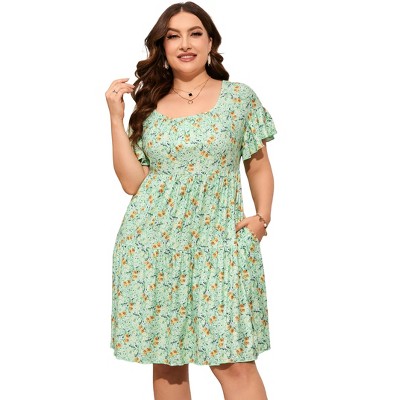 - Us Women'S V-Neck Pleated Mid-Length Plus Size DressPink white flower,5XL