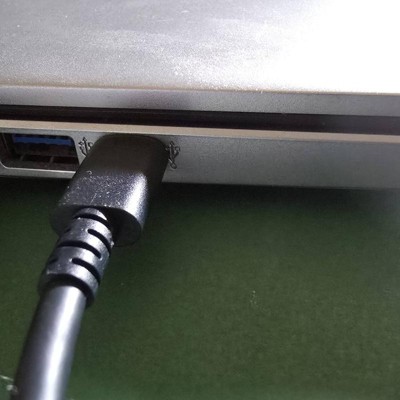 A: Hello SusanB - We appreciate your interest for this item. The HDMI plug from an HDMI cable plugs into the HDMI port on the Black USB-C to HDMI Adapter. The adapter's built-in USB-C plug (male connector) then connects to the USB-C port on your source device (laptop, phone, etc.). I hope it helps - Juliette.