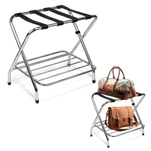 Double Rack-Luggage Rack, Pack of 1, Chrome, Fully Asssembled, Luggage Rack for Guest Room