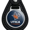 - QUALITY MATERIAL: Our durable round keychain is crafted from leather with a glossy resin-topped emblem featured design shown on one side. Approximately 1.5" (3.8cm) x 2.5" (6.4cm) in overall size, emblem is 1" (2.5cm)..