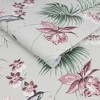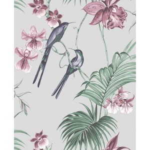A full roll of this product is 20.5 inches wide and 396 inches long. A full roll can cover up to 56 square feet depending on the design match and pattern repeat. A sample of this product is 8 inches by 11 inches. Create a bold and beautiful tropical paradise in your home with this statement design from the Julien MacDonald collection. Tropical florals and birds of paradise combine in this trail design. This colorway features a grey glittering background that makes it perfect for all four walls or use it to create a feature wall. Textured wallpaper covers minor wall imperfections. Offset match with a 25.2 inch pattern repeat.