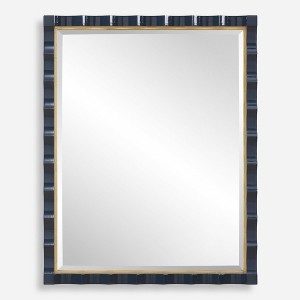 The Gulf Navy Blue Mirror is a statement of refined elegance and modern sophistication. Featuring a striking scalloped edge, this mirror is beautifully enhanced by a luxurious gold leaf inner liner, creating a perfect blend of classic charm and contemporary design. The high-gloss navy lacquer finish adds depth and richness, making it an ideal centerpiece for living rooms, bedrooms, or entryways. A generous 1" bevel further elevates the mirror's reflective quality, while its versatile design allows it to be hung both horizontally and vertically.
