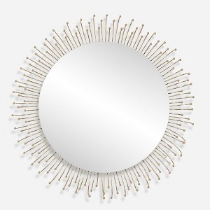 Elevate your wall decor with the sophisticated charm of the Aga Round Gold Mirror. Featuring a striking floral-inspired silhouette, this mirror exudes modern elegance with its delicately layered design and radiant plated gold finish.