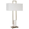 Uttermost 30160 Column White Marble Table Lamp with Brass Accents and Rectangular Linen Shade