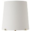 - Tapered white linen hardback shade creates a soft lighting effect