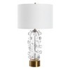 Bring refined elegance and artistic charm into your home with the Aura Clear Glass Table Lamp with Organic Spheres and Brushed Brass Foot. Its crystal-clear glass base is beautifully accented with organic glass spheres, adding visual texture and contemporary sophistication to the silhouette.