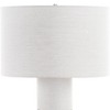 - Matching round linen drum shade in neutral tone