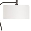 - Suspended round hardback shade in crisp white linen for a clean look.