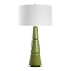 Make a refined style statement with the Mendell Moss Green Table Lamp, a tall and artfully finished piece that blends elegant form with textural richness. This lamp features a gracefully tapered ceramic base adorned in a distinctive crackled moss green glaze, offering a layered and organic visual depth. Antique brass accents, including a coordinating finial, lend a touch of classic warmth and sophistication. Topped with a 20-inch round hardback drum shade in white linen with natural slubbing, this lamp offers a perfect balance of height, texture, and glow—ideal for anchoring console tables or illuminating spacious nightstands.