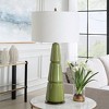- Ceramic body with a tapered silhouette finished in a crackled moss green glaze.