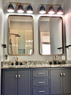 This mirror was perfect for the vision created for this master bathroom update! The mirrors blended so well with the faucet, vanity and granite.