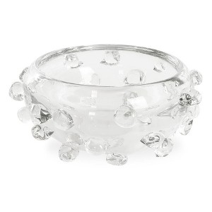 Elevate your interior styling with the Aura Thick Clear Glass Bowl with Organic Spheres and Modern Artistic Detail. Crafted from substantial clear glass, this decorative bowl is accented with raised glass spheres that lend dimension and contemporary appeal. Each sphere appears to emerge naturally from the surface, giving the piece a playful yet sophisticated silhouette.