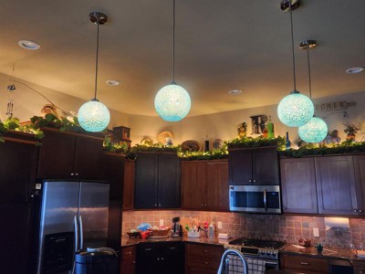 I love these lights! they are not as bright as I would like, but I have other good kitchen lighting. These lights provide the WOW factor, I was looking for. my granite has a blue streak in it, that matches the lights. Also, one fixture does not hang correctly, at first it really bothered me. Then I embraced it! It reminds me that the world is not always perfect. And I think I'm the only one who ever notices it. I would highly recommend these fixtures. I wish they made a larger over the table matching fixture, with better light.