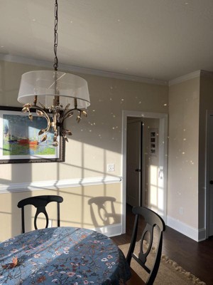 Uttermost Burnished Gold Pendant Chandelier 21" Wide French Crystal Leaves Silken Champagne Sheer Shade 4-Light for Dining Room