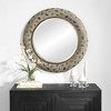 Frame Finish: The Copper Terrazzo Mirror Features An Iron Frame Finished In A Texture Concrete Look Embellished With Heavily Antiqued Rough Cut Copper Pieces Accented With A Burnished Gold Raised Inner Edge. Mirror Has A Generous 1 1/4" Bevel.