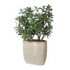 - Planted in a textured ceramic pot with a warm tan glazed finish