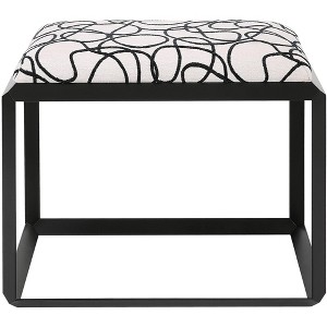 A classic bevel provides the design inspirations for the base of this Mid-Century modern bench from Uttermost. Its open rectangular frame is a distinctive addition, in a black finish that's sure to stand out. The seat is padded with foam for optimal comfort and includes a white fabric patterned with black curls that bring the perfect dose of dimension and artistry.