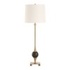 The Dempsey Marble Buffet Lamp combines sleek sophistication with sculptural charm. Its slender plated metal base is finished in a warm tone that exudes refinement, while a dramatic black dolomite marble orb provides a striking visual counterpoint. The slightly tapered round hardback shade, covered in casual white linen, completes this elegant design. Perfect for accenting sideboards or entry tables, it brings a balance of bold and minimalist aesthetics.