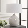 The Dribble White Glaze Table Lamp merges artistic texture with classic function. Crafted from ceramic, its high-fired white glaze finish features a striking dripped gray overlay, offering a dynamic surface that varies subtly with each piece. Plated brushed nickel accents add a hint of modern polish, enhancing its clean yet expressive silhouette.