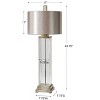 The Uttermost Drustan Clear Glass Table Lamp brings sophistication and grandeur to any room. Featuring a tall, clear glass body set on a steel base finished in bronze and silver tones, this lamp blends durability with timeless elegance.