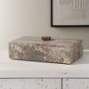 The Griseus Travertine Stone Box with Bronze Handle and Lift Off Lid is the perfect fusion of utility and sophistication. Crafted from authentic gray unfilled travertine, this storage box offers natural texture and timeless elegance, making it ideal for desktops, nightstands, or entryways.