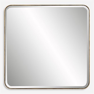A Versatile Design That Complements Virtually Any Style, This Square Mirror Features A Deep Iron Frame With Curved Corners, Finished In An Antique Gold. Mirror Has A 1" Bevel.