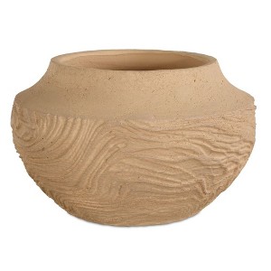 Handcrafted from terracotta, this vase features an organic texture reminiscent of flowing sand dunes. Its earthy tones and sculptural form make it a striking accent piece, perfect for adding warmth and artistry to any space.