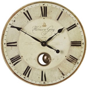 - Rustic vintage-look round wall clock from the Harrison Gray collection by Uttermost.
