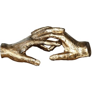 Create a sense of intimacy perfect for a den or bedroom with this modern metal figurine. From Uttermost, it features two human hands with fingers intertwined, all in a textured antique gold finish over cast iron construction. One hand appears masculine, one feminine, with a charming aura of eternity to enhance your space.