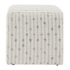 The Joie Ottoman effortlessly blends comfort and charm with its plush upholstery and modern aesthetic. Upholstered in soft white chenille stripes layered over a flax-toned base, this piece offers a refreshing texture. A subtle touch of sea blue adds a playful accent, making it perfect as a cozy footrest, extra seating, or even a decorative element in any room.