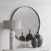 Frame Finish: Industrial Style Round Mirror Features A Petite Metal Frame Finished In Rustic Black With Aged White Distressing, Surrounding An Antique Style Mirror.