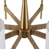 - Sophisticated 8-light chandelier with rattan-wrapped arms and brass finish.