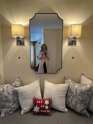 Update your hallway or entry with this Lennox collection mirror by Uttermost. Featuring an appealing scalloped corner design, this mirror is wrapped in a satin black iron frame, adding a traditional element to your home. This piece includes hangers on the back and comes with adjustable J-hooks.
