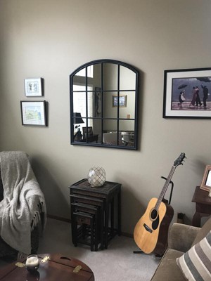 Frame Finish: This Arch Top, Window Inspired Mirror Was Created Using Handcrafted Iron That Is Finished In A Rustic Aged Black Accented With Light Gray Distressing.