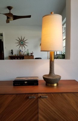 Uttermost Mid Century Modern Table Lamp 30 3/4" Tall Faux Stone Ivory Brass Oatmeal Linen Drum Shade for Living Room Bedroom House