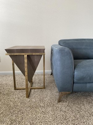 Uttermost Modern Aged Gold Square Accent Table 18 1/4" Wide Gray Faux Shagreen Leather Pyramid Tabletop for Living Room Bedroom