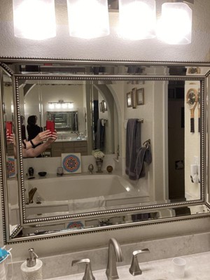 LOVE THIS MIRROR VERY CLASSY I purchased this mirror based on a few of the reviews the product had previously. One person said every time she walked into her bathroom she fell in love with the mirror all over again. I paired it with an overhead light fixture and sconces and it is just lovely. I have the same feeling, it is gorgeous.
