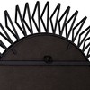 A Mid-Century inspired sunburst motif highlights this contemporary round wall mirror. From Uttermost and exclusive to Lamps Plus, the mirror boasts a dimensional frame of perfectly spaced metal rays, all in matte black finish that pops against most wall spaces. The center mirror adds reflectivity and brightness, perfect for an entryway, kitchen, or living room.