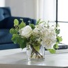 - Includes cream hydrangeas, roses, and eucalyptus stems