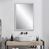 - Rectangular vanity wall mirror with elegant white iron frame