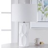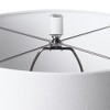 Bring refined elegance and modern geometry into your living space with the Uttermost Sinclair White Table Lamp. Standing at 26 inches tall, this lamp features a dimensional ceramic base with a glossy white glaze, reflecting a subtle mid-century design influence. A sleek brushed nickel neck and crystal finial offer elevated contrast, while the white round drum hardback shade adds a soft, ambient glow. Ideal for living rooms, bedrooms, or office spaces, its clean lines and balanced materials make it a versatile décor accent. This table lamp includes a 3-way socket compatible with up to 150W Type A bulbs, offering flexible lighting levels for any mood.