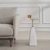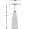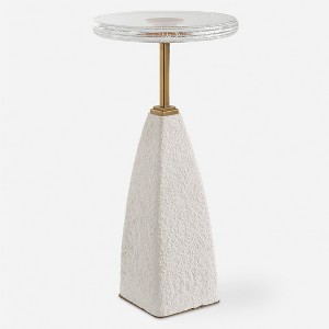 The Sora Glass Drink Table blends modern design with luxurious materials to create a functional and stylish accent piece. Featuring a thick seeded glass top that adds texture and visual intrigue, this table is supported by a solid white sandstone base for exceptional stability. Brushed brass stainless steel accents bring a warm metallic touch, elevating the overall aesthetic. Perfect for holding beverages, décor, or small essentials, this compact table is ideal for living rooms, lounges, or reading nooks.