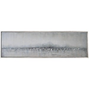 You can almost hear the roar of the surf from this Tides Edge hand-painted gallery framed canvas wall art designed by Grace Feyock for Uttermost. It features a versatile multi-color palette of light gray, cream, and icy blue complimented by silver leaf accents. An attractive silver leaf finish fir wood frame completes the vivid look of this piece.