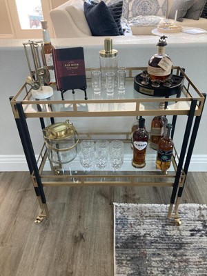 Uttermost Two-Tone Black and Gold Bar Cart – Sleek Iron Frame & Glass